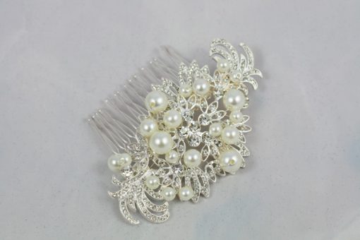 Beautiful silver, rhinestone and pearl comb. Perfect for those looking for a simply yet elegant finishing touch. Approximately 8cm long.