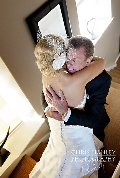 We created a bepoke piece for Fiona based on her “Daisy” theme, which tied in with detail on her bridesmaids dresses and the daisy formation of stones on her own engagement ring. We created a daisy formation on the flower embellishment and made a bandeau style veil to cover her hair at the back: