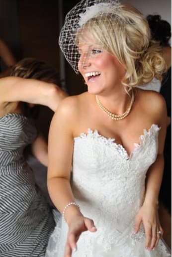 Bespoke birdcage veil made for Pamela with ivory vintage lace and swarovsky crystals detail to match the detail on her Benjamin Roberts dress: