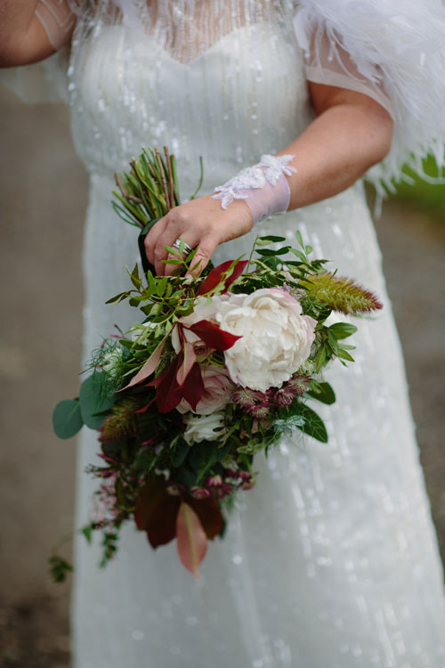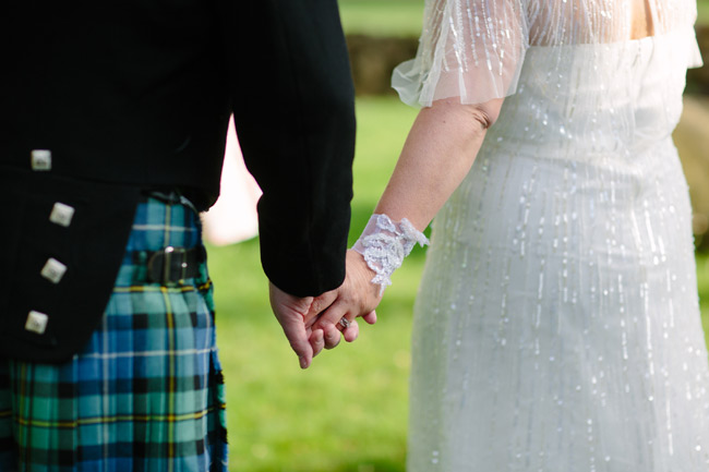 We first met Anita at the Vintage Wedding Show in Edinburgh and happily agreed to design a bespoke bridal cuff for her, to accessorise her gorgeous Eliza Jane Howell dress. Her dress was adorned in white sequins which she wanted included in the design.  We used a gorgeous Italian lace and hand sewed on the sequins before completing the cuff with a lovely pearl button fastening. It matched her dress perfectly and was a lovely finishing touch to a beautiful outfit.