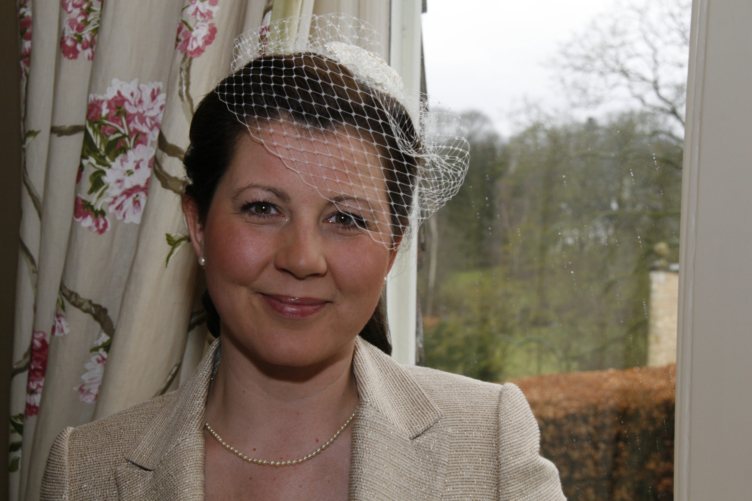 We have received a couple of photos from a customer of her wearing her bespoke piece. Harriet wanted something simple, with satin roses and pearls. We created her a small piece, with ivory roses and an ivory birdcage veil which went beautifully with her dress and jacket. A huge congratulations to Harriet and her new husband. 🙂