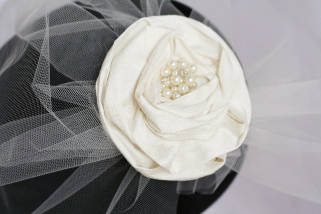 We’ve also made a lovely simple black birdcage veil using a simple black flower and lace – similar to our Arianna design:
