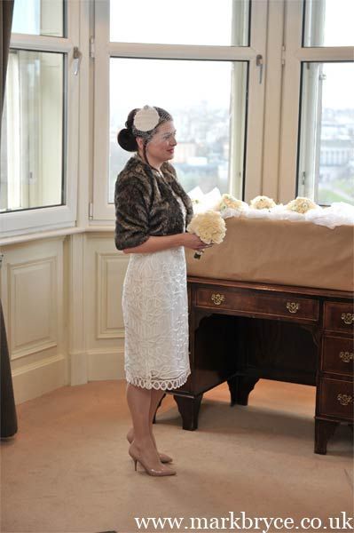 We have now heard from Kate who has very kindly let us use a few of her wedding photos. Kate looks amazing, wearing a vintage style fur shrug to keep off the winter chill. Thanks so much to Kate for sharing these photos with us – you look absolutely beautiful 🙂